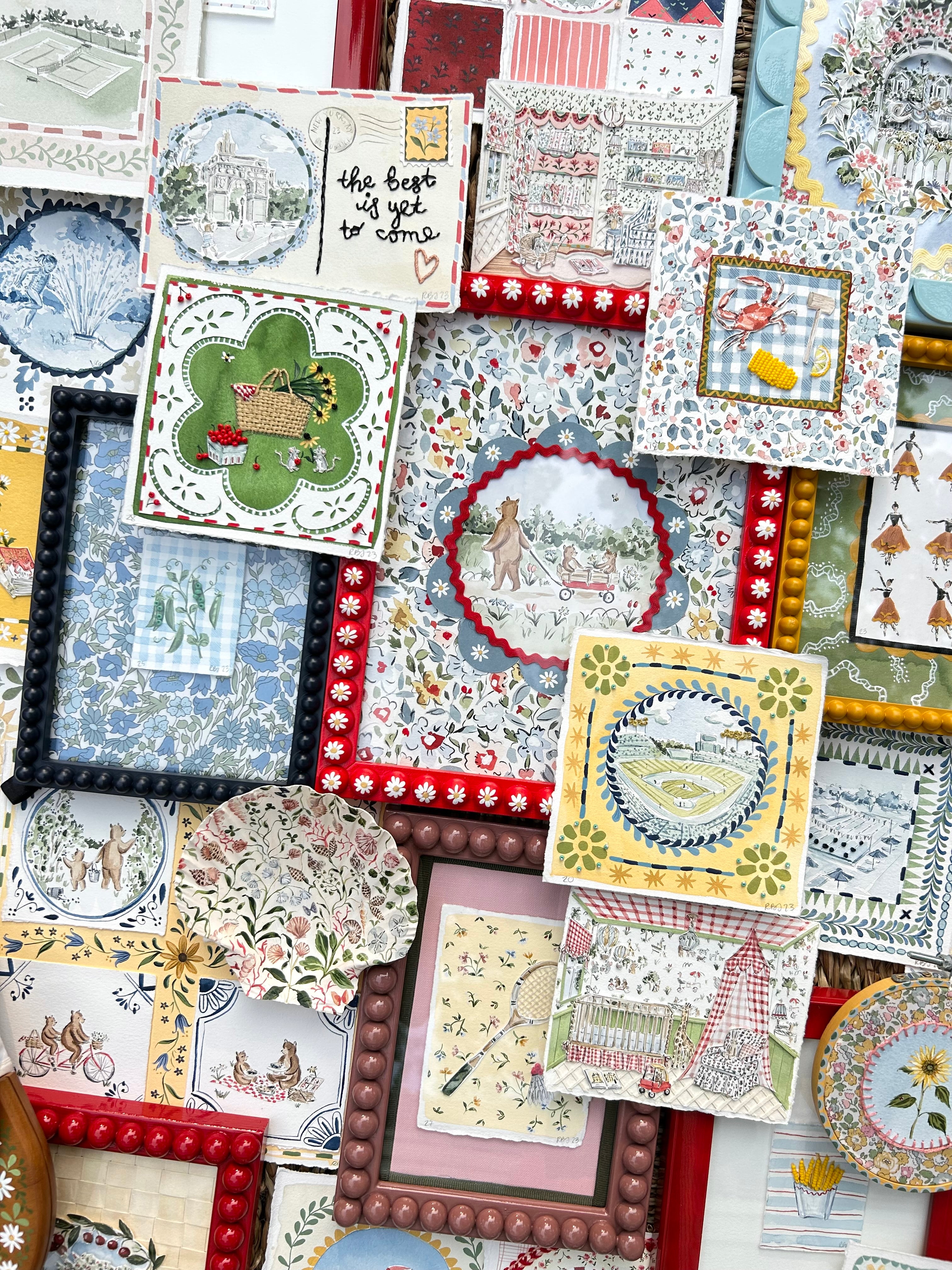 Riley Sheehey is an artist and illustrator known for her whimsical, nostalgia-infused paintings and hand-painted objects. Through watercolor, mixed media, and textile design, she captures the quiet joy of everyday life, translating memory and imagination into art that delights, comforts, and inspires.